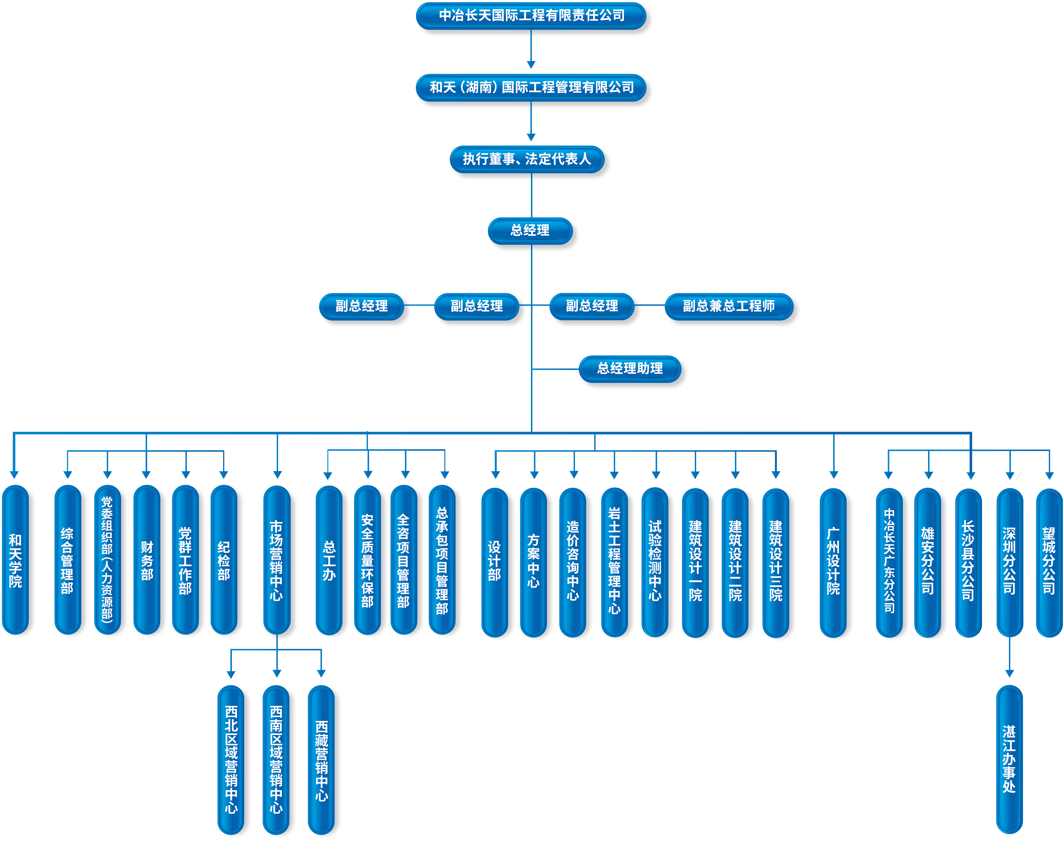 和天(湖南)國際工程管理有限公司(以下簡稱“和天國際”或“公司”)成立于1992年,是中國五礦、中國中冶骨干子企業--中冶長天國際工程有限責任公司的全資子公司,是集勘察、設計、全過程工程咨詢、EPC工程總承包、工程監理、造價咨詢、工程施工、試驗檢測、工程代建以及招標代理等業務為一體的綜合性國際型工程建設企業。